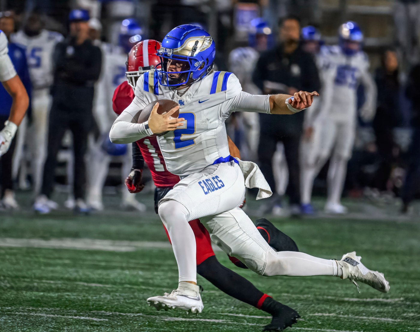 The Eagles rolled into the CIF-SS Division 1 championship game with a 31-6 win over Orange Lutheran. Santa Margarita receiver Trent Mosley scored his first two receiving touchdowns of the season to go with his seven rushing touchdowns. Isaia Vandermade had two of the Eagles’ five sacks. Santa Margarita, which beat previously undefeated Sierra Canyon 21-9 in the Division 1 first round, plays Centennial in the championship game Friday at 7 p.m. at the Rose Bowl. The Eagles beat Centennial in overtime 33-27 in August.